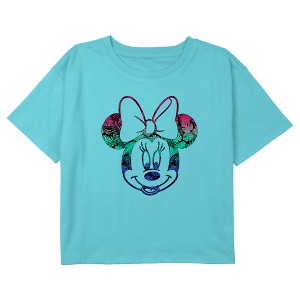 Girl's Mickey & Friends Colorful Tropical Minnie Graphic Graphic Cropped T-Shirt - 1 of 3