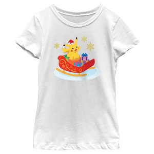 Girl's Pokemon Christmas Pikachu Sleigh T-Shirt - 1 of 4