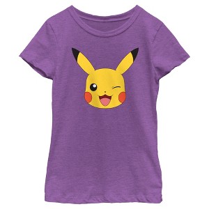Girl's Pokemon Pikachu Wink Face T-Shirt - 1 of 4