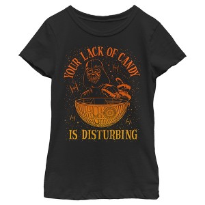 Girl's Star Wars: A New Hope Halloween Darth Vader and Death Star Your Lack of Candy is Disturbing T-Shirt - 1 of 4