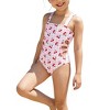 Girls 1 Piece Swimsuit Square Neck Cut Out Print Adjustable Strap Swimwear Pink L