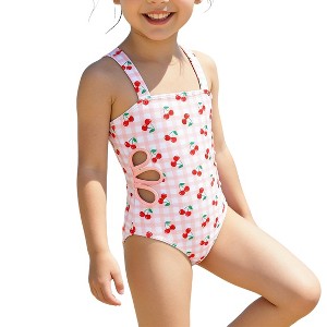 - The cut out side detail elevates the classic 1 piece design, and the cherry print adds a fun nostalgic touch to kids swimwear.