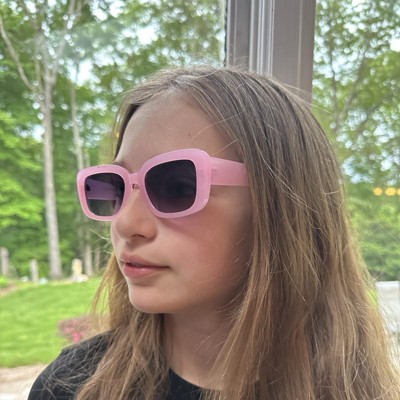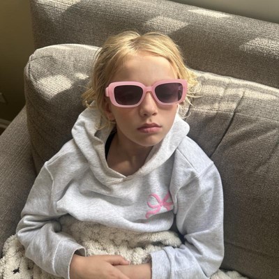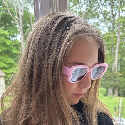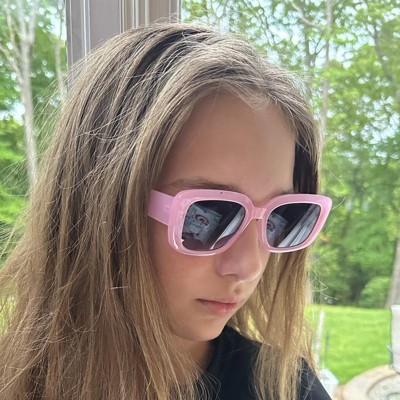 Brighten up your day with the Girls' Rectangle Sunglasses - art class™ Pink. These stylish sunglasses feature a rectangular design on the pink frames, adding a fun touch to any outfit. The tinted lenses provide UV protection, keeping your eyes safe while enjoying the sunshine. Perfect for outdoor adventures or just looking cool.