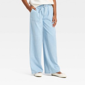 Girls' Wide Leg Chambray Pull-On Pants - Cat & Jack™ Light Wash XS