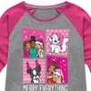 Barbie - Holidays & Christmas - Merry Everything - Toddler & Youth Girls Raglan Graphic T-Shirt - Step into the glamorous pink world of Barbie with our officially licensed graphic garments for the fashion-forward! Whether you dream of being a fashion designer, a mermaid princess, or a world-traveling explorer, our garments bring Barbie's world to life with vibrant colors and playful prints. Crafted with quality materials and attention to detail, each piece ensures comfort and durability for all-day play. Express your unique sense of style and imagination with our exclusive Barbie graphic apparel!