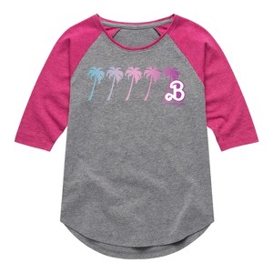 Barbie - Palm Trees - Dream Summer - Toddler And Youth Girls Raglan Graphic T-Shirt - Step into the glamorous pink world of Barbie with our officially licensed graphic garments for the fashion-forward! Whether you dream of being a fashion designer, a mermaid princess, or a world-traveling explorer, our garments bring Barbie's world to life with vibrant colors and playful prints. Crafted with quality materials and attention to detail, each piece ensures comfort and durability for all-day play. Express your unique sense of style and imagination with our exclusive Barbie graphic apparel!