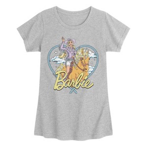Girls' - Barbie - Western Barbie Heart Fitted Short Sleeve Graphic T-Shirt