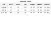 | Girls | S (4-6X) | 26 | 23 | 26.5 | 18-20 | 43-48.5 | 39-50 |