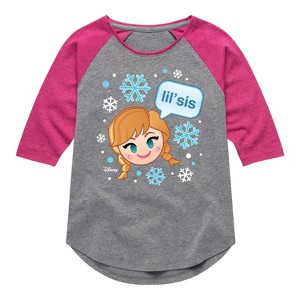 Disney Emoji - Sis Lil Anna - Toddler And Youth Girls Raglan Graphic T-Shirt - Add a touch of magic to your wardrobe with this graphic apparel featuring iconic Disney designs. Showcasing beloved characters and classic imagery, each piece combines nostalgic charm with modern style—perfect for Disney fans of all ages. Whether you're headed to the parks or just adding whimsy to your everyday look, these graphics bring the magic to life.