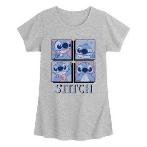 Disney - Stitch Grid - Youth Girls Short Sleeve T-Shirt - Add a touch of magic to your wardrobe with this graphic apparel featuring iconic Disney designs. Showcasing beloved characters and classic imagery, each piece combines nostalgic charm with modern style—perfect for Disney fans of all ages. Whether you're headed to the parks or just adding whimsy to your everyday look, these graphics bring the magic to life.