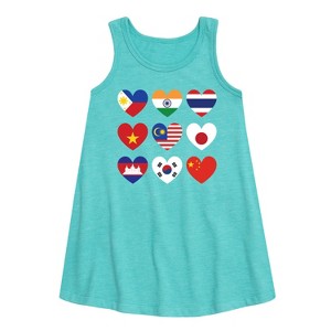 Instant Message - AAPI Heart Flags - Toddler and Youth Girls A-line Dress - Instant Message is an online specialty fashion retailer for everything from funny to inspiring printed apparel. We offer a range of garments from long sleeve and relaxed fit t-shirts, to lightweight french-terry long sleeve shirts, hoodies and graphic print pullovers. Our products feature fun and trendy graphics that are perfect for any occasion and also make great gifts.