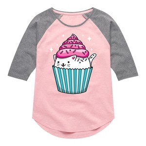 Girls' - Instant Message - Cat Cupcake Shirt Tail Raglan Graphic T-shirt