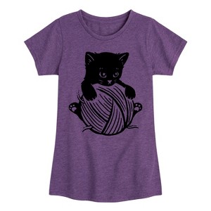 Girls' - Instant Message - Cat with Yarn Ball Fitted Short Sleeve Graphic T-Shirt - 1 of 4