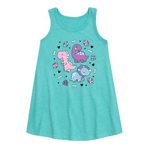 Girls' - Instant Message - Stacked Girly Dinos Graphic Sleeveless Aline Dress