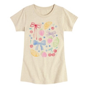 Girls' - Instant Message - Watercolor Fruit and Bows -Youth Girls Short Sleeve T-shirt Fitted Short Sleeve Graphic T-Shirt - 1 of 4