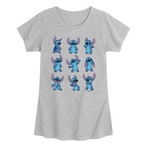 Lilo & Stitch - Stitch Moods - Youth Girls Fitted Short Sleeve T-Shirt - Celebrate the ohana with Lilo & Stitch graphic apparel, blending new visuals with classic heartwarming moments featuring Lilo, Stitch, and the bonds of family.