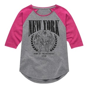 Girls' - Marvel - Avengers NYC Shirt Tail Raglan Graphic T-shirt - 1 of 3