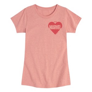Girls' - Marvel - Heart Valentine Fitted Short Sleeve Graphic T-Shirt - 1 of 4