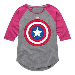 Girls' - Marvel - Captain America Logo Shield Shirt Tail Raglan Graphic T-shirt - 1 of 4