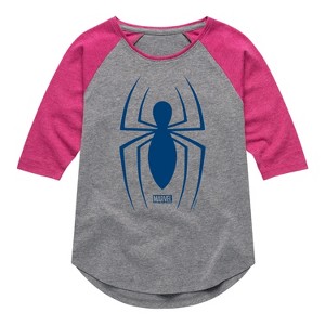 Girls' - Marvel - Spider-man Logo Shirt Tail Raglan Graphic T-shirt - 1 of 2
