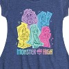 Monster High - Pastel Character Group - Toddler And Youth Girls Fit And Flare Dress - Freaky meets fabulous in Monster High graphic apparel starring ghouls like Draculaura, Frankie Stein, and Clawdeen Wolf. These fierce, fashion-forward designs celebrate self-expression, individuality, and monster style.