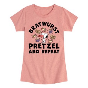 Peanuts - Bratwurst Pretzel And Repeat Snoopy - Toddler & Youth Girls Short Sleeve Graphic T-Shirt - From the best-loved comic strip in history comes officially licensed PEANUTS apparel for fans everywhere. Show your love for Charlie Brown, Snoopy, Woodstock, Lucy, Linus, Pigpen and the whole gang. Copyright Peanuts.