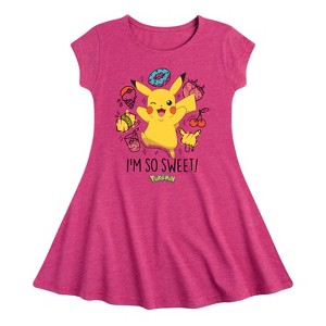 Pokémon - I'm So Sweet - Youth Girls Fit And Flare Dress - Celebrate the essence of Pokemon's Pokémon with officially licensed apparel featuring unique designs crafted exclusively by Hybrid Apparel. Each piece brings beloved characters, iconic imagery, and memorable moments to life, offering Pokémon fans a one-of-a-kind way to showcase their passion.