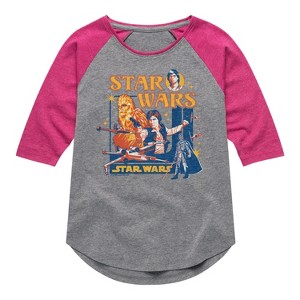 Girls' - Star Wars - Han Solo and Chewie Retro Shirt Tail Raglan Graphic T-shirt - 1 of 3