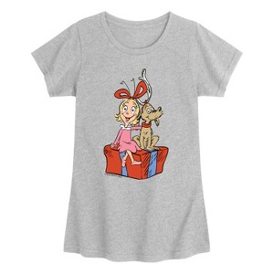 Girls' - The Grinch - Max And Cindy Lou Present Fitted Short Sleeve Graphic T-Shirt