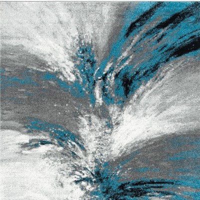 The rug features an eye-catching pattern with dynamic bursts of blue and grey shades, echoing an abstract, painterly explosion that will become the focal point of any interior. Its vivid colors are perfect for creating a serene yet sophisticated atmosphere, while the robust materials promise resilience against everyday foot traffic.