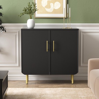 Glam Mirror and Wood Storage Cabinet Black - Olivia & May: Mirrored Furniture with Protective Tips