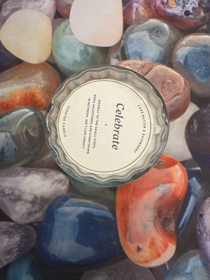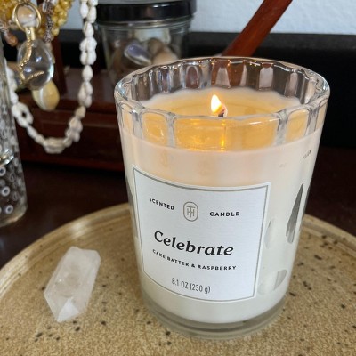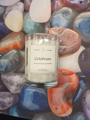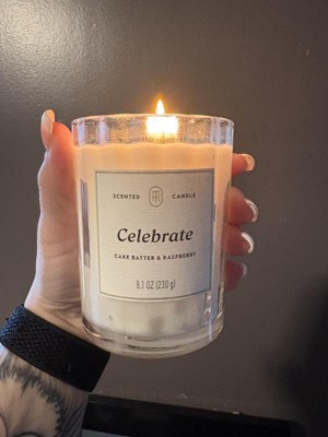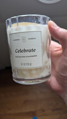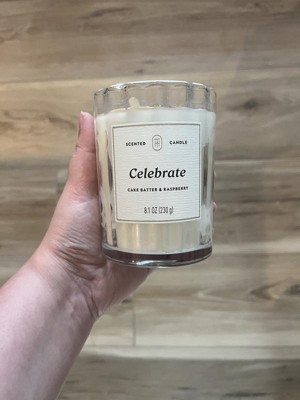 This candle has an amazing fragrance that is a perfect mix of raspberries and cake. Depending on the day I get a different strength of each flavor and can taste it. The candle burns easily and nicely. The glass jar is a great looking option and fits with the name/idea of Celebrate.