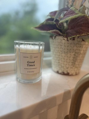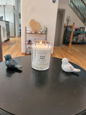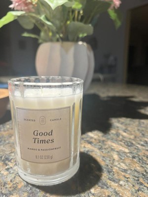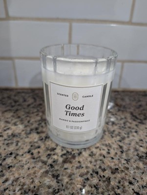 Such a fun candle! Love the simple clear glass design that has a slight ripple to it. The “Good Times” label is a very fun twist. Love looking at it on my kitchen window sill! The mago & passionfruit scent is lovely, it is not overwhelming or too fruity! It’s a pleasant scent that will not annoy my husband! Highly recommend, would make a great little teacher or hostess gift!