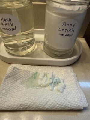 Lotion & Hand Soap are blue tinged thru the pumps!
