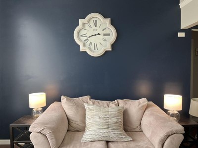 I bought Smoke Grey and as you can see they probably put a warm filter on the online photo because the base definitely looks more cool and indigo in person. And the shade is light… not dark like in the photo. I might keep it if I change the lightbulb it came with to a warm color and it looks more like the color in the online catalog.