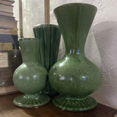 I fell in love with the entire set of Threshold Green Glazed Vases when I saw them in the store, but originally only purchased the Bud Vase. I loved the sculptural look of the vase itself, as well as the reactive glaze finish that gives each vase a unique, handcrafted look. The lightly fluted detailing on the base adds texture and charm to this vase. The vibrant green color is a breath of fresh air for spring, but can be used throughout the entire year. The color really lends itself to all seasonal decor - it looks lovely with red flowers for Christmas, white flowers for St. Patrick's Day, pastel flowers for Easter, bright multicolored flowers in summer, and perfect with fall foliage as well. The vase is glazed both inside and outside, so it can hold water to display fresh stems, as well as faux stems. The vase has a nice weight to it and a solid base, so it will not tip over. The foot pads on the bottom ensure that it will not scratch surfaces. This vase truly looks far more expensive than the price paid. After purchasing the Bud Vase, I decided complete the set and buy both the medium and tall vase as well. I highly recommend these vases!
