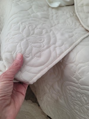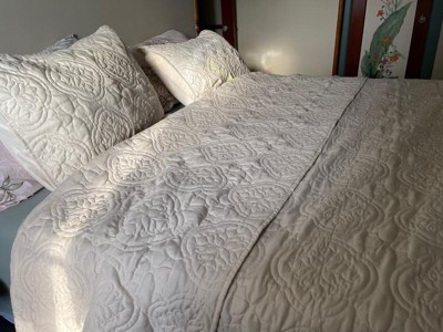 [This review was collected as part of a promotion.] I’m loving this soft beautiful cream quilt! It’s very lightweight which is a lifesaver for the current heat wave. The color and print is gorgeous and to my surprise it was oversized. I was concerned getting a queen for my queen size mattress as I usually purchase a king duvets for the oversized look. I dislike when I can see under the bed. This fit perfectly and nicely touches the floor on the corners without dragging. Very happy with this brand.