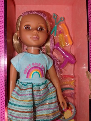 - 14" Hairdresser Doll: Brie has bright brown eyes, long eyelashes, and long, silky, blonde and purple hair that's fun to brush and style.
