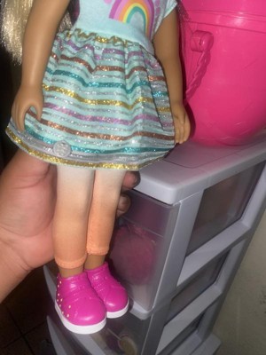 [This review was collected as part of a promotion.] * Brie hair dresser doll has bright brown eyes, long eyelashes, and long, silky, blonde and purple hair that’s fun to brush and style. * The Arms and legs bend and rotate to easily change outfits and style hair during salon days! * wears a rainbow top with matching skirt, gradient leggings, and bright purple shoes. * It comes with a pretend blow dryer, 4 hair clips, a pair of scissors, comb, spray bottle, and a stylist apron to neatly hold her styling tools. * Outfit has easy-open closures to quickly put on and remove; compatible with most 14″ dolls and accessories. * Suggested for kids ages 3+ (small parts); perfect height for small hands, easy to clean, and durable for everyday play.