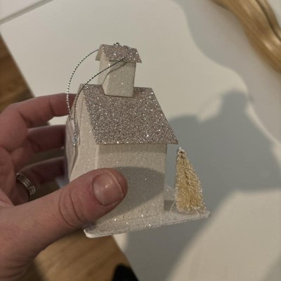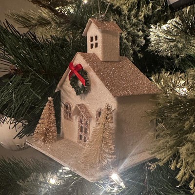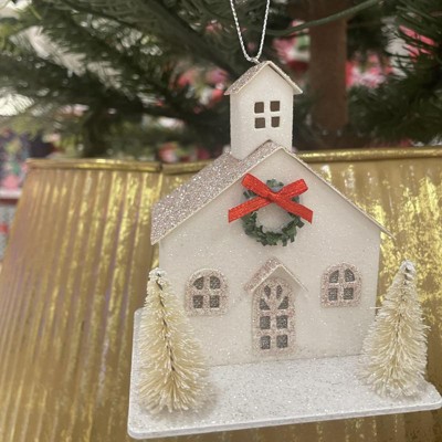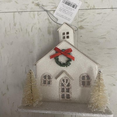 Glittered Church with Bottle Brush Trees Christmas Tree Ornament White - Wondershop™