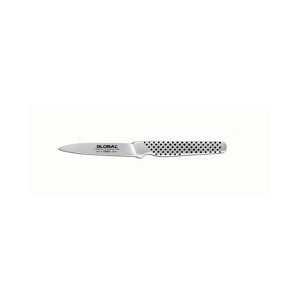The Global 3-Inch Peeling Knife (GSF-15) offers precision and control for delicate tasks. Made in Japan from razor-sharp Cromova 18 stainless steel, it’s ideal for peeling fruits and vegetables. The seamless stainless handle provides balance and comfort. Durable, hygienic, and perfectly crafted for everyday kitchen use.