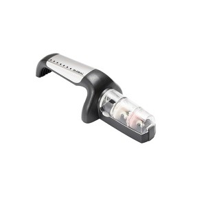 Features: Manual Sharpening, Nonslip Base, Sharpening Levels: Coarse and Fine, Sharpens Santoku Knives, Sharpens Standard Edge Knives