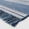 Bring a dash of urban style to your outdoor decor with this Global Stripe Outdoor Rug from Threshold™. The geometric global grid pattern on this outdoor rug fuses easily with most furniture tones and creates a warm and inviting atmosphere once furnished. You also don't have to worry about accidents or messes; you can easily clean it by just rinsing it with water.