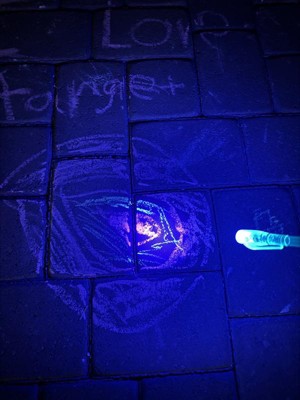 This chalk is so cool! It comes in five fun colors. The pen is really easy to use: Just push the button for the light and shine it on the chalk. The chalk will start to glow! I'd love to see this in a larger tub with more colors and to keep them all together.
