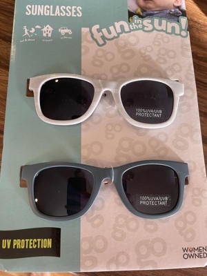These sunglasses are perfect for my toddler (even though the picture shows him struggling with wearing them - he was being silly!). I love that they come in a two-pack so that we can have one pair in each of our vehicles. They seem very durable and I feel that they're unlikely to break within a few uses.