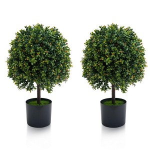 GOCAPTAIN 20" Artificial Topiary Trees Set of 2 with Fruits, Fake Boxwood Balls in Nursery Pot, Faux Plants for Indoor Outdoor Garden Decor
