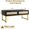 GOCAPTAIN Upgrade Coffee Table with 2 Rattan Drawers, 46" Modern Center Table, Sturdy Metal Frame, Accent Wooden Tables for Living Room, Meeting Room