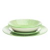 Godinger Silver 12pc Porcelain Laura Dinnerware Set Green: Stripe Pattern, Service for 4, Dishwasher & Microwave Safe