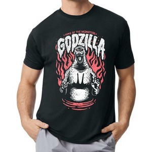- CUSTOM DESIGNED: Show off your love for the classic monster movies with this men's Godzilla tee featuring a big, bold graphic of the iconic monster flexing alongside fire-red flames - an eye-catching image that has been professionally printed against a bold black background for long-lasting print quality.