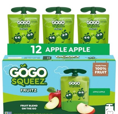 GoGo SqueeZ No Sugar Added Applesauce and Fruit Puree Apple Apple - 12.69oz/4ct